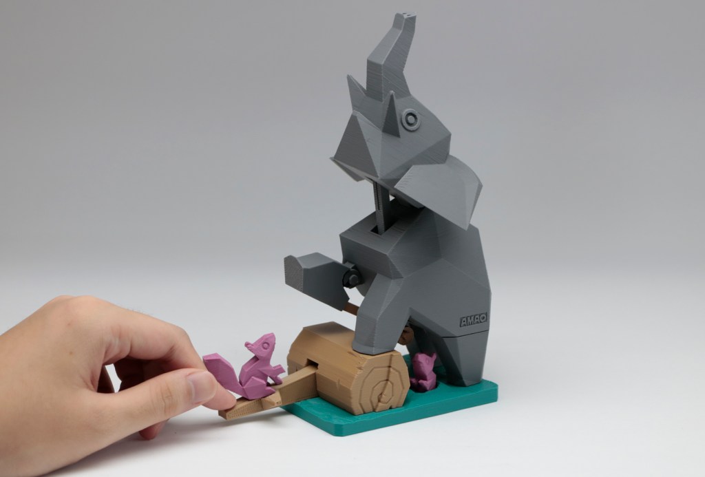 The elephant stepped on the trunk lying on the ground and looked up and roared. It frightened the squirrel family. The squirrel seemed to be begging the elephant to stop! The squirrel’s home was about to collapse!
