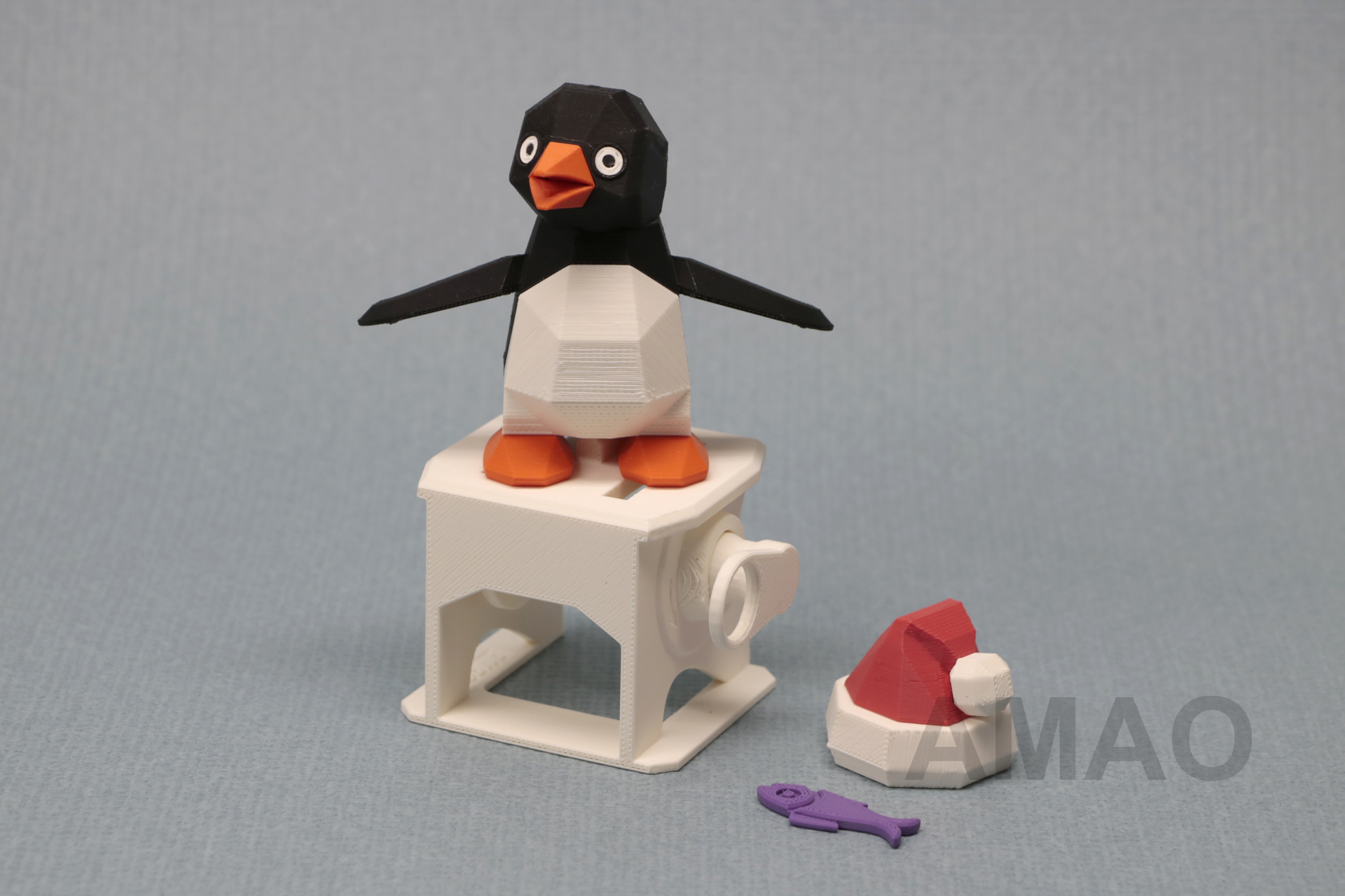 Because Christmas was coming when the penguin was designed, so I gave it a red hat and a fish, and it seemed happier!