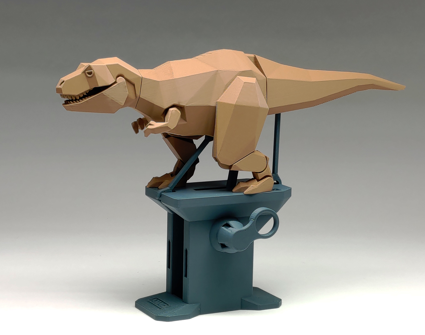 This tyrannosaurus is a partial model of (Triceratops vs T-Rex Automata) and also an automaton that can function alone.