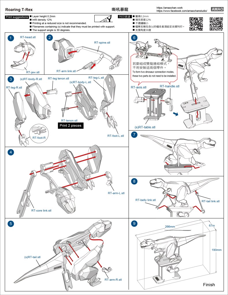 If you download Triceratops and T-Rex at different times, you will also get the connecting rod kit that connects the two dinosaurs. The connecting rod kit allows the two dinosaurs to operate synchronously. (The kit is in the T-Rex folder)