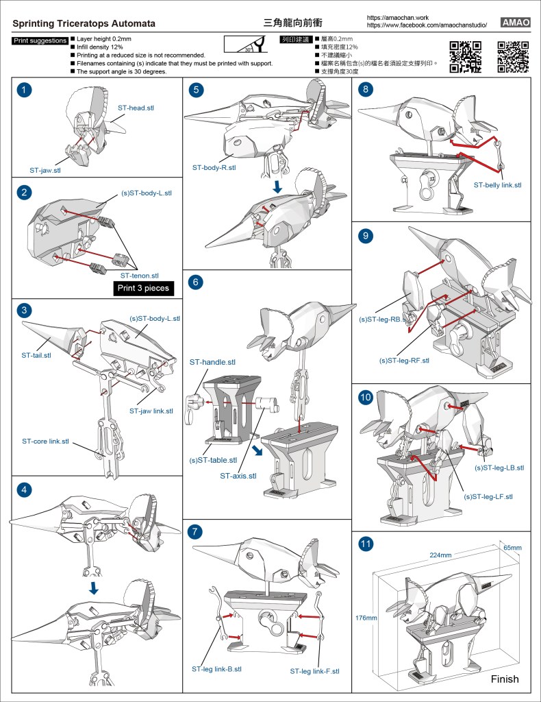 If you download Triceratops and T-Rex at different times, you will also get the connecting rod kit that connects the two dinosaurs. The connecting rod kit allows the two dinosaurs to operate synchronously. (The kit is in the T-Rex folder)