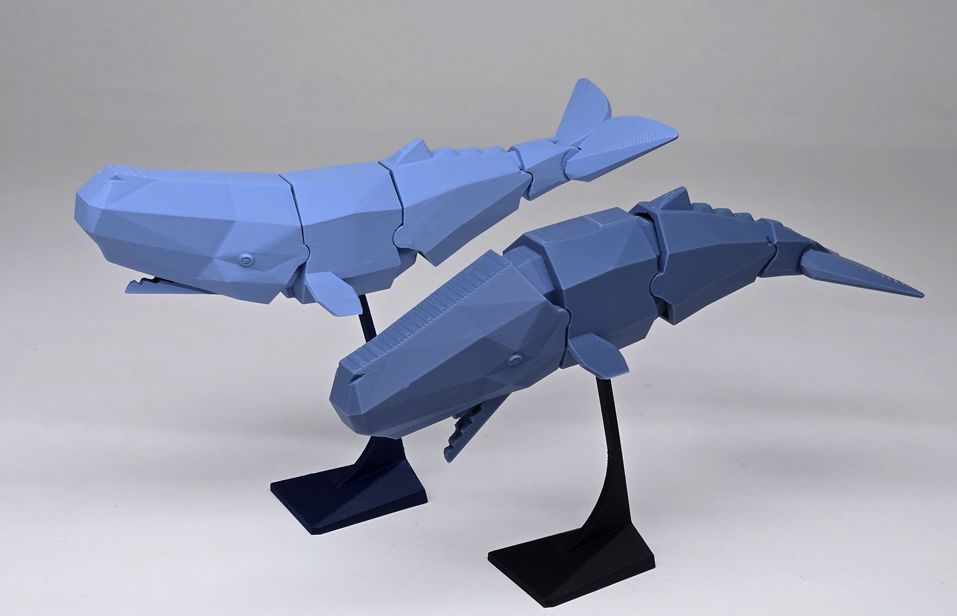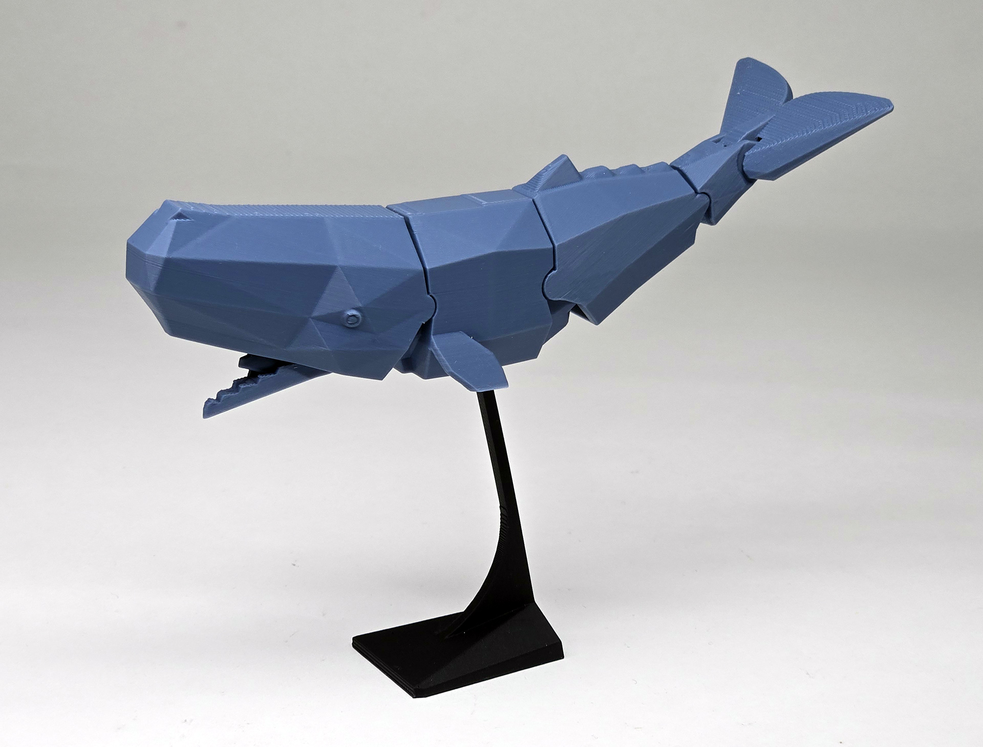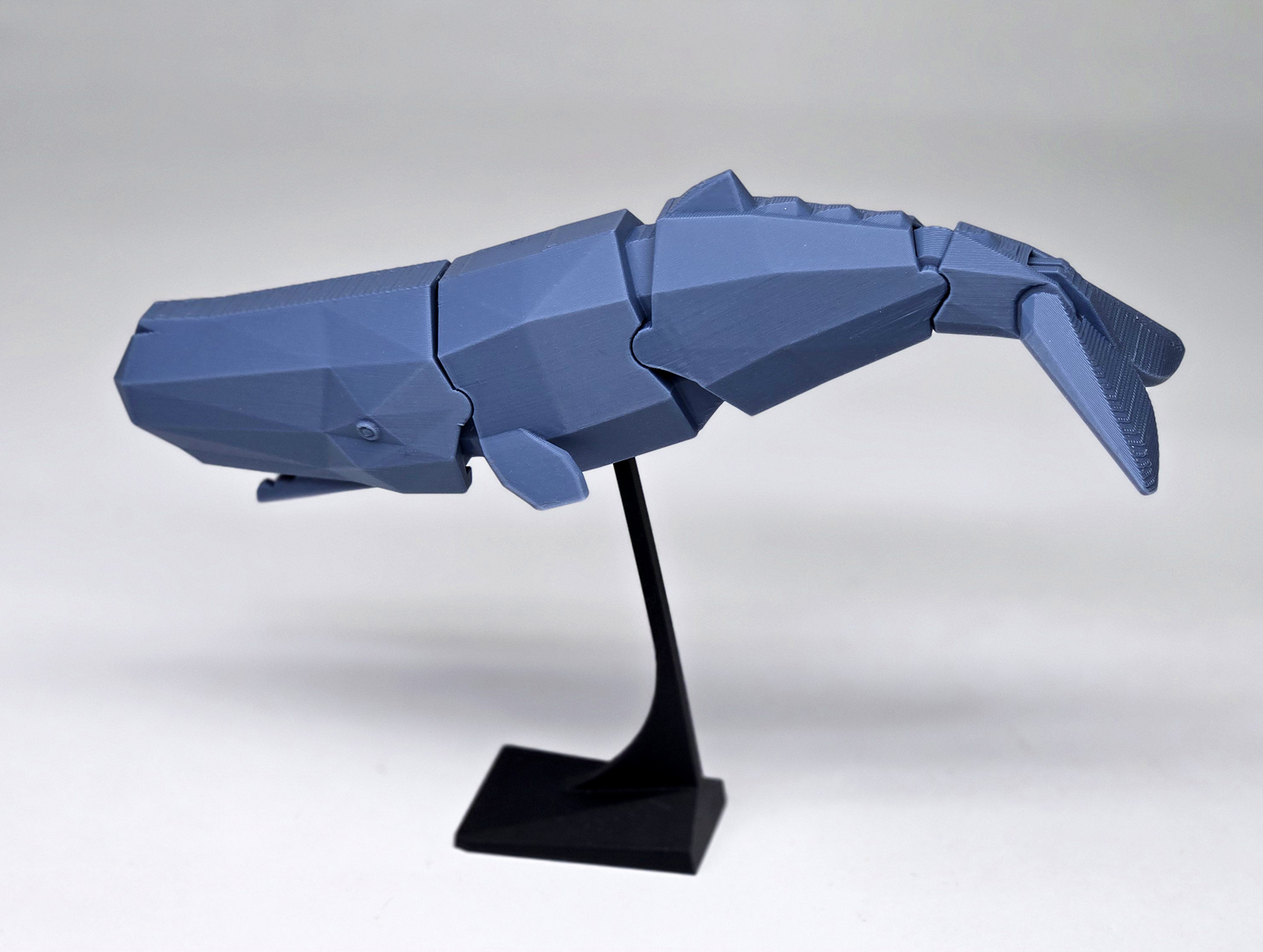 This is a poseable whale model with four joints to simulate swimming postures. The whale’s body can be printed in one piece.