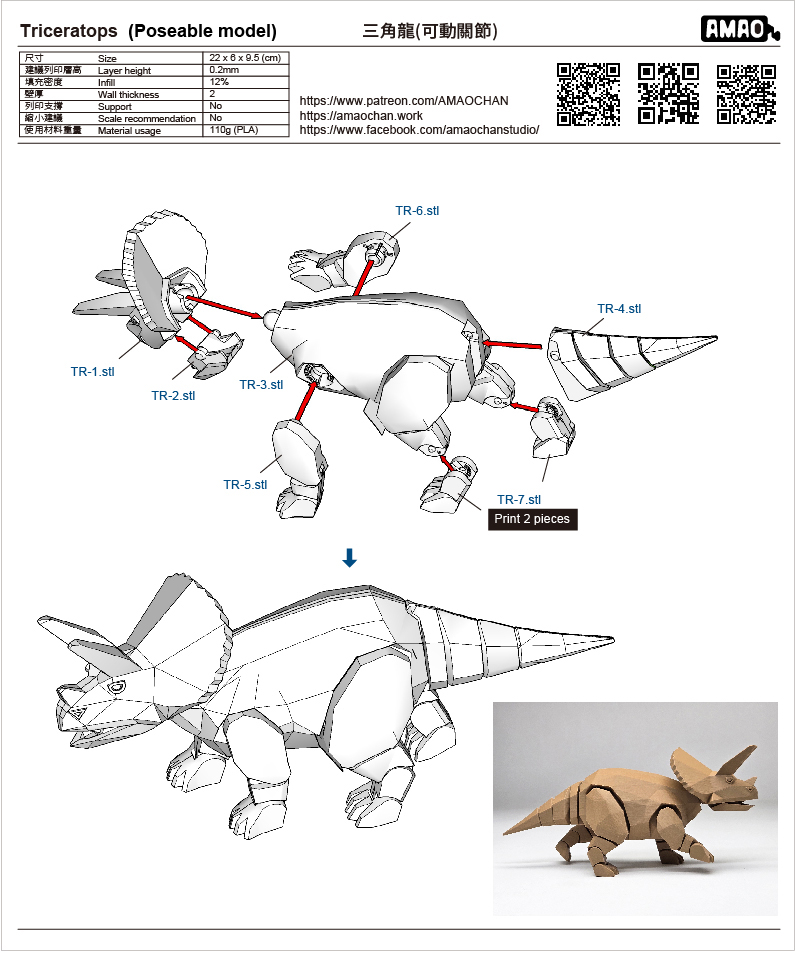 It’s a pure poseable version of Triceratops. With a total of 20 specially designed joints, you can create and fix poses for this beast easily.