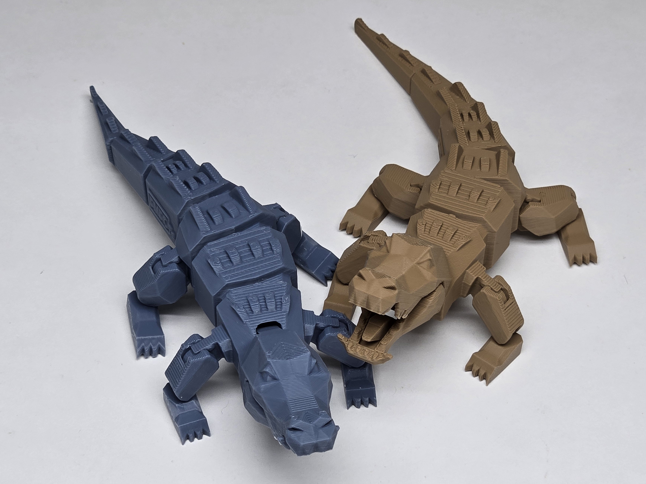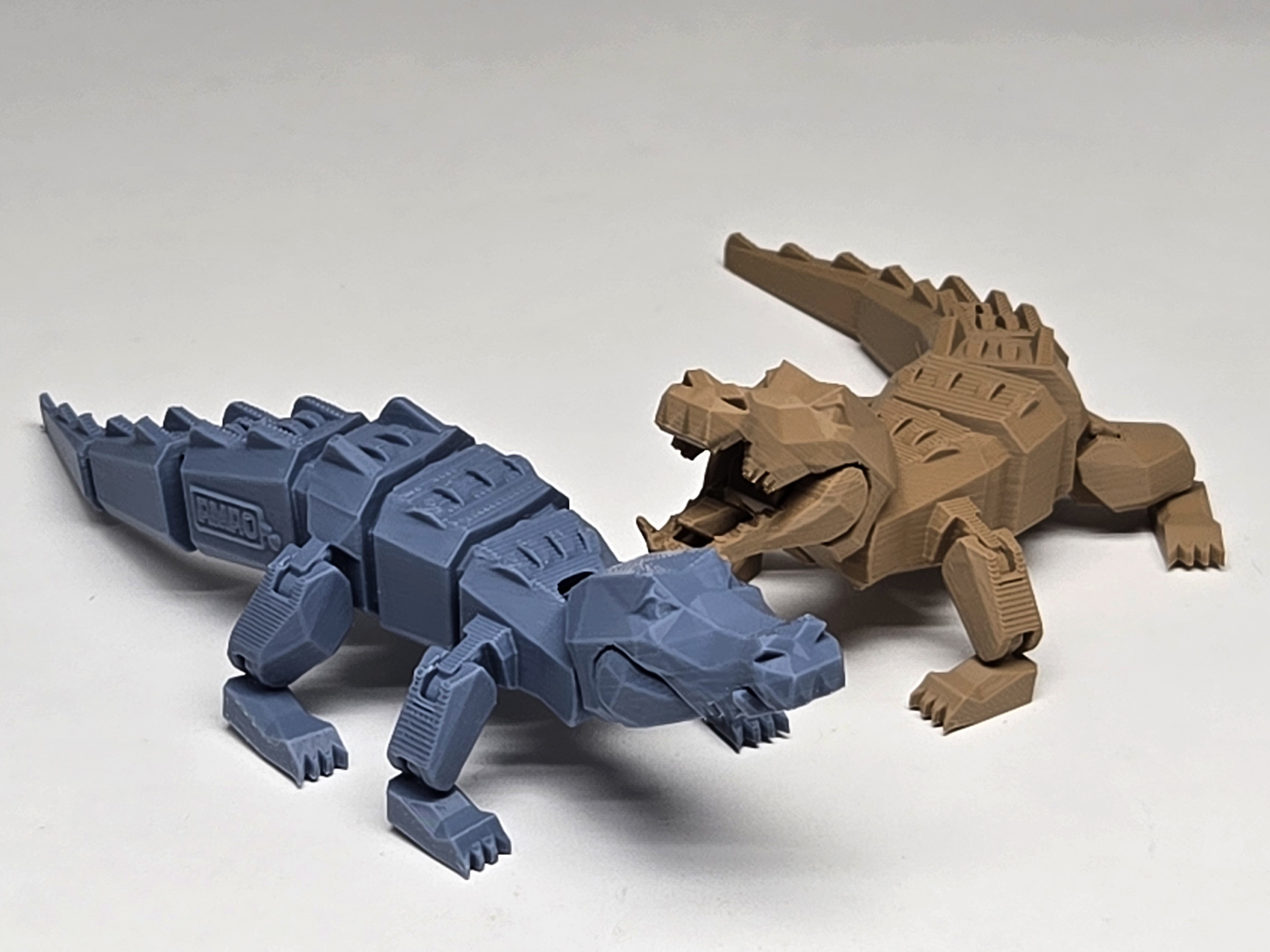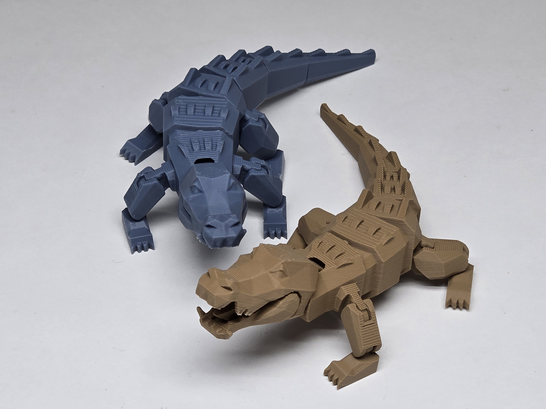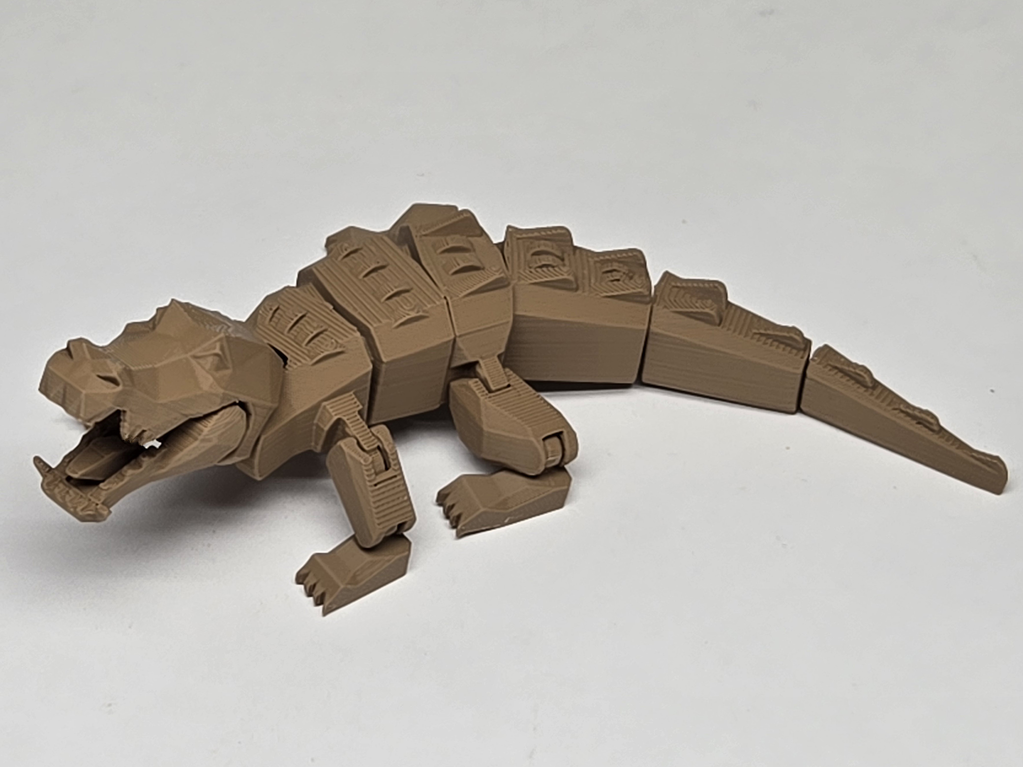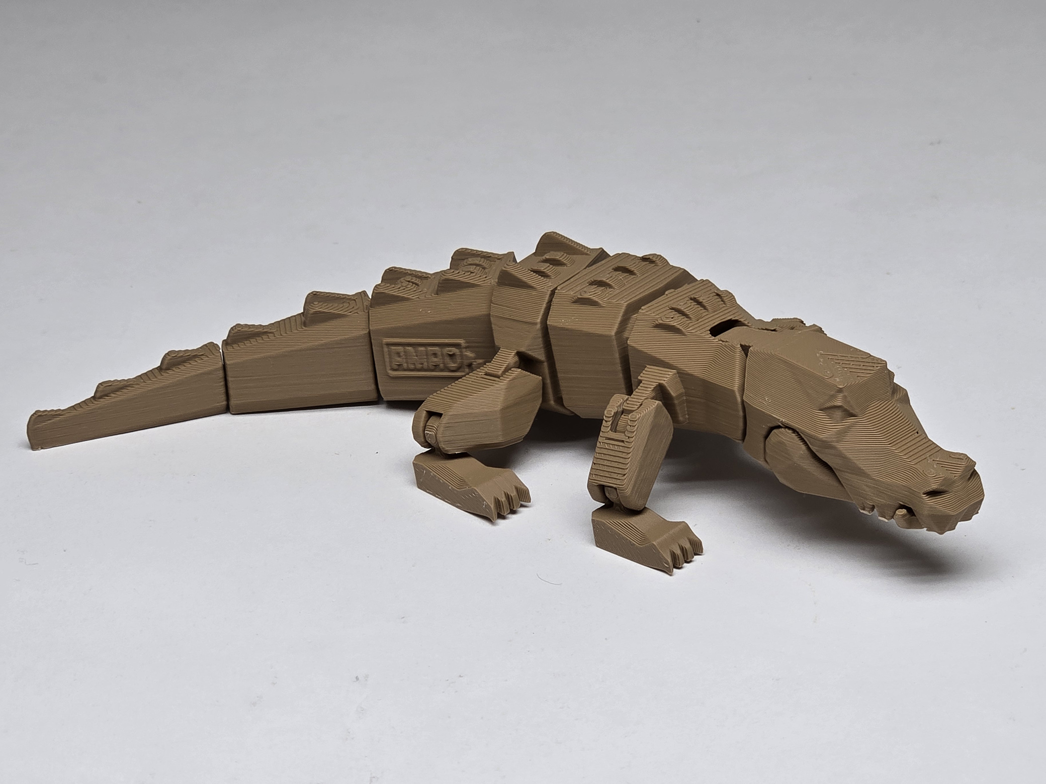 It is an articulated crocodile. The mouth can be opened, and the body can be adjusted. It can be printed in one piece.
