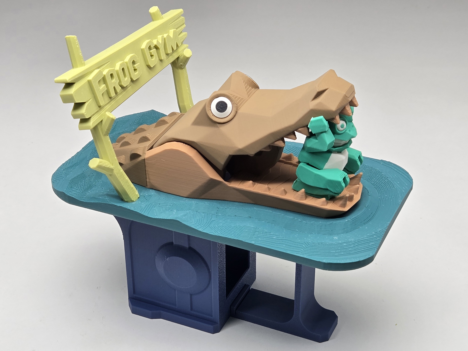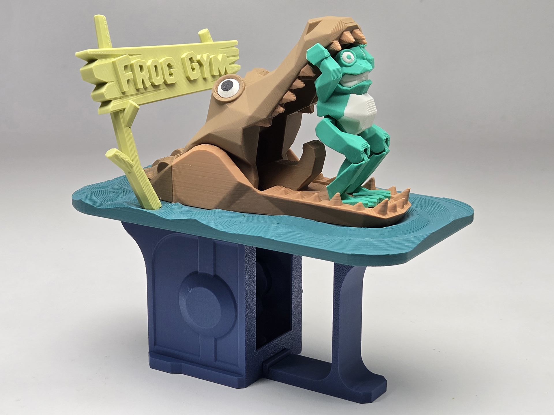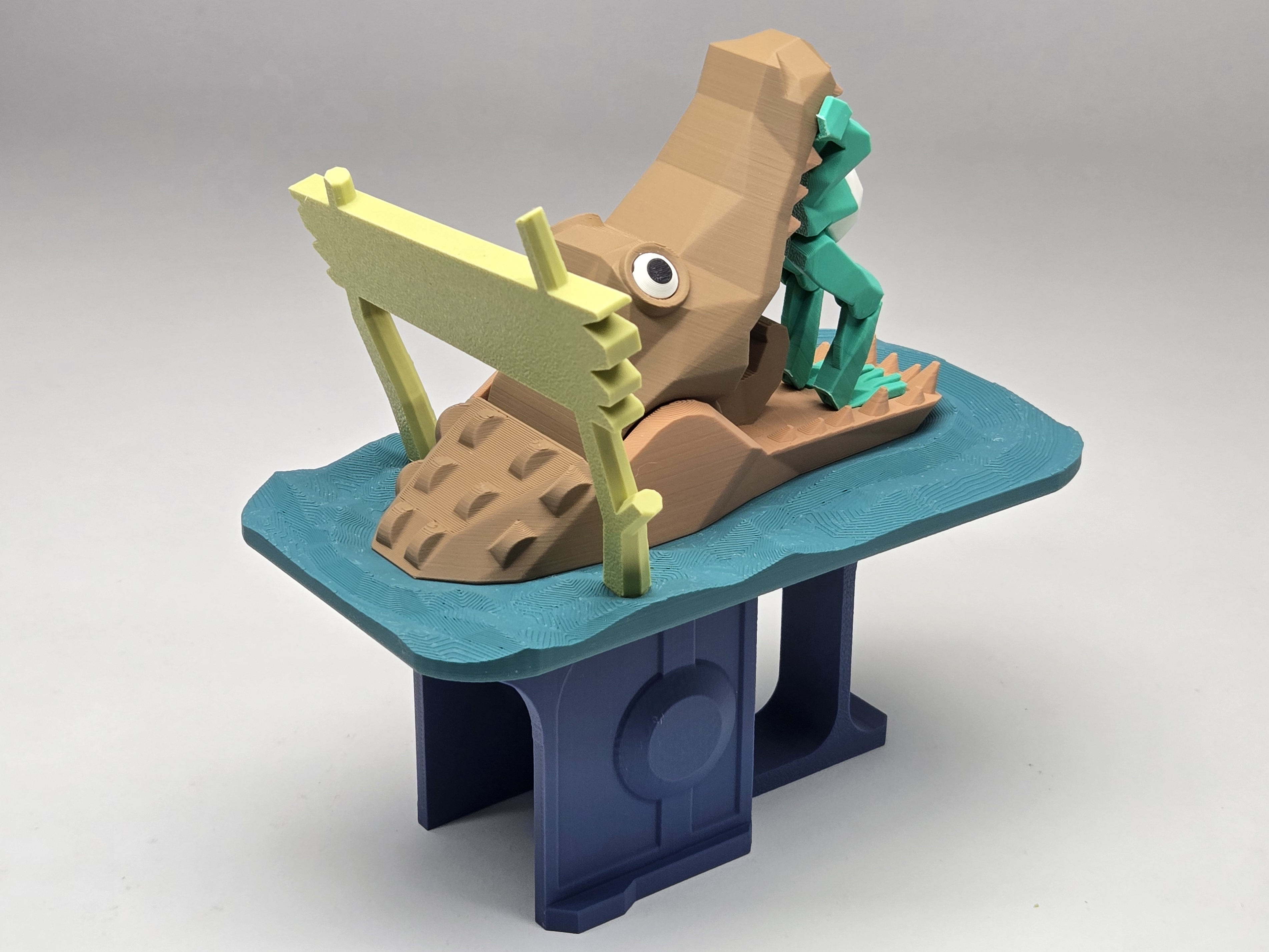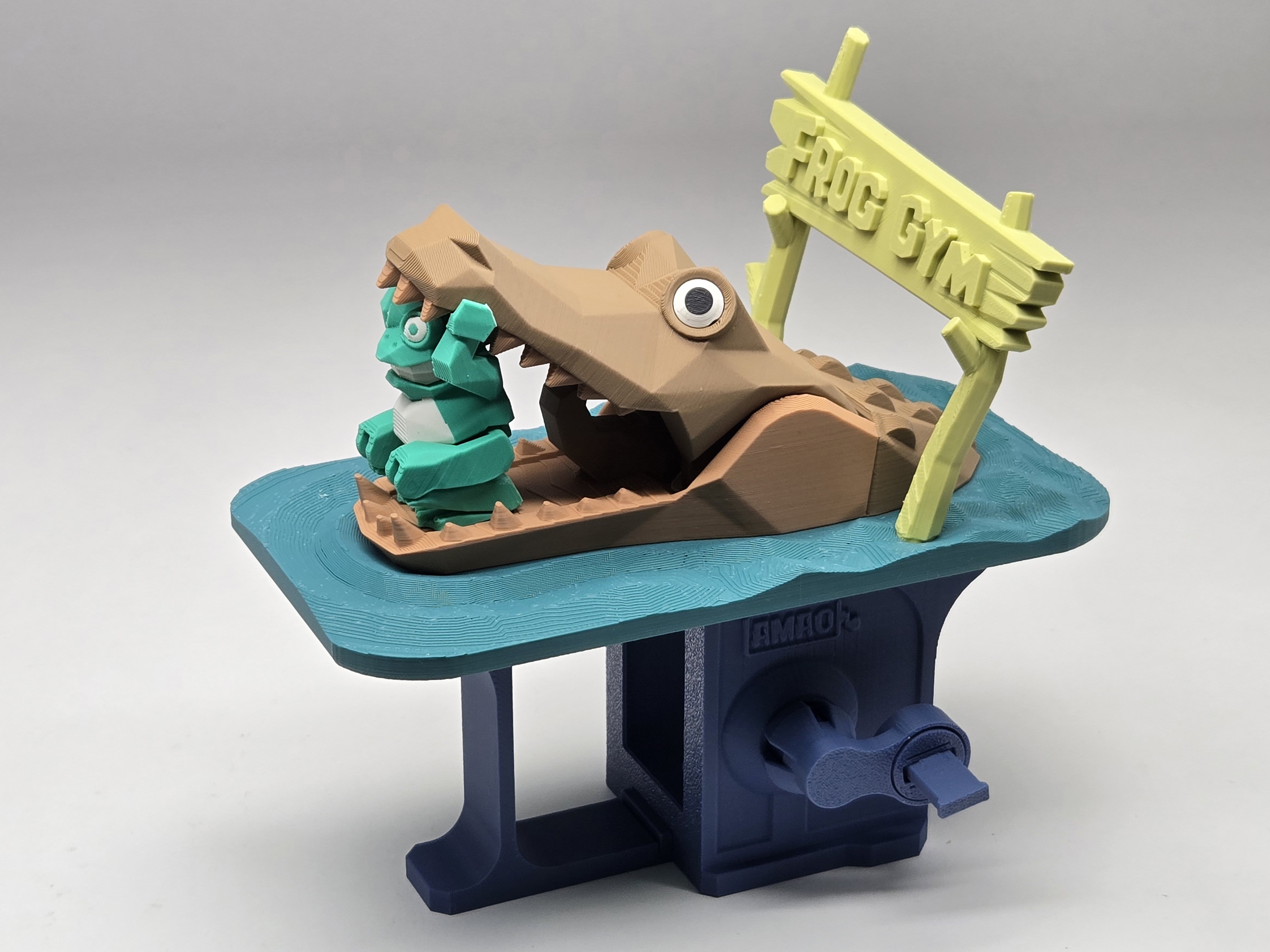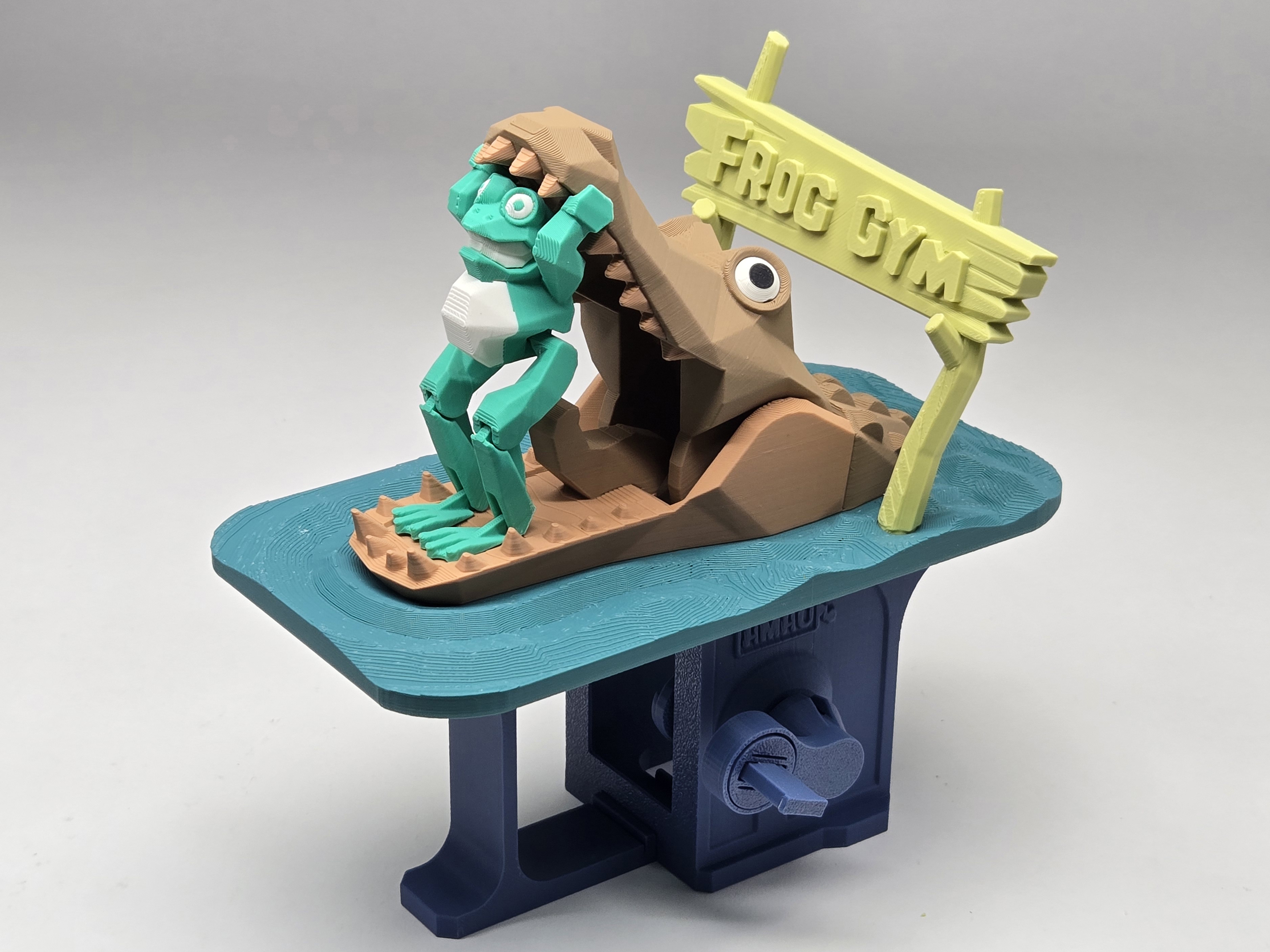 The design came from a DIY mechanical model I created for a science magazine several years ago. In the original version, the frog stood in the mouth of a hippopotamus, creating a whimsical and playful scene.