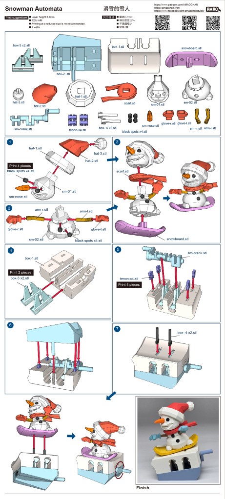 All the parts of this work are printed and assembled separately, achieving a rich visual effect without the need for a multi-color printing machine.