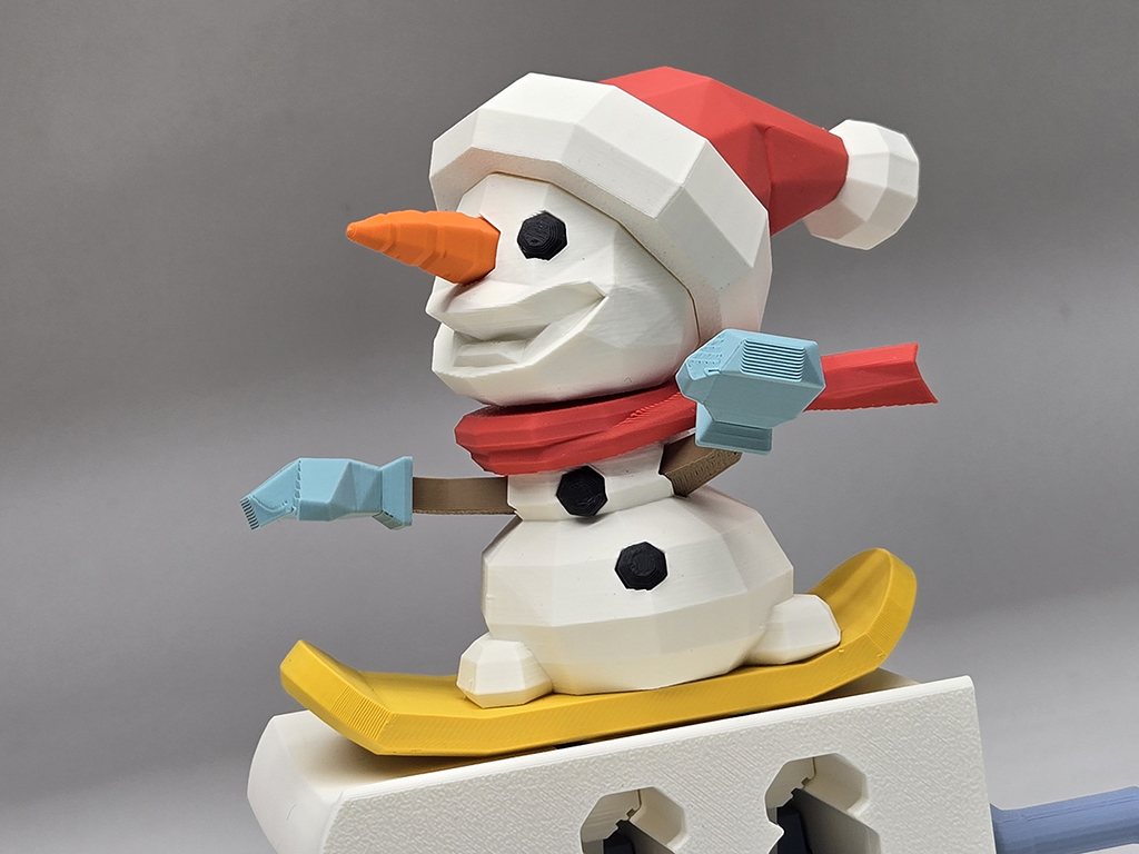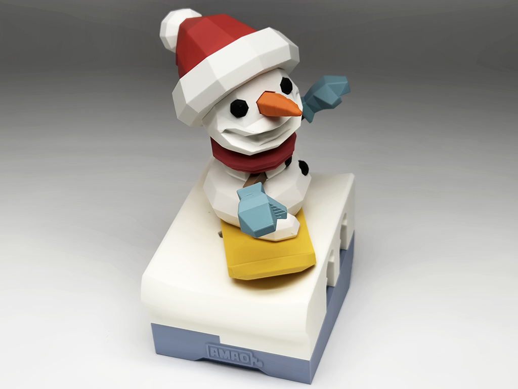 這款雪人自動機玩具以聖誕節的冬日氛圍為背景,透過手動旋轉把手,帶動雪人進行單板滑雪般的滑行動作。轉動把手時,雪人會站在滑板上左右滑動,模擬在雪地坡面上來回滑行的節奏,動作直覺且充滿玩味。底座左右延伸的弧形地面,讓滑行路徑自然起伏,使轉向更顯靈活,整體動態看起來更加活潑生動。紅色帽子與圍巾呼應經典聖誕意象,為操作過程增添溫暖的節慶感受。它不只是節慶擺飾,而是一件能透過雙手創造動態樂趣的聖誕玩具。